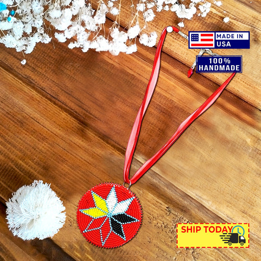 Handmade Beaded Red Medallion 4 Directions Necklace Earrings Set