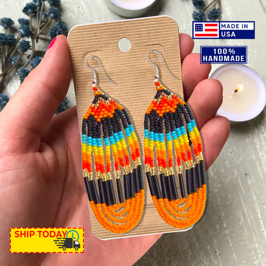 Black Sun Colors Hook Pattern Beaded Handmade Earrings For Women