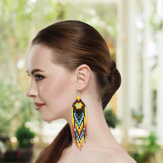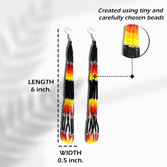 Black Fire Color Long Pattern Beaded Handmade Earrings For Women