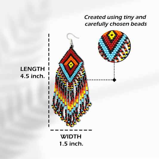 Native Style Multi-Color Long Beaded Handmade Earrings For Women