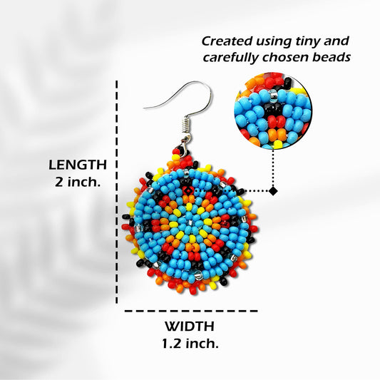 Blue Red Ethnic Beaded Handmade Earrings For Women