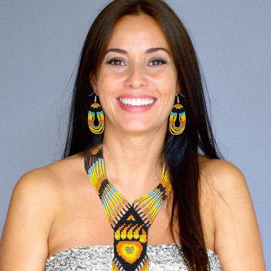 Black Fire Seed Beaded Star Medallion Necklace Earrings Set
