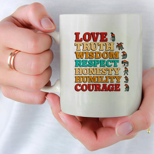 Seven Grandfather Teachings - Values Typography Ceramic Coffee Mug
