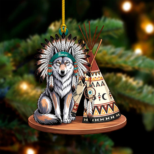 Native American Wolf Christmas - Custom Name Design - Ornament Acrylic