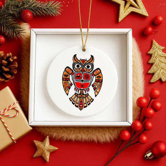 Native American Owl Ceramic Ornament - Sacred Wisdom for Holiday Decor