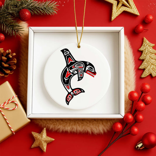 Tribal Orca Whale Ceramic Ornament - Unique Native Art for Holiday Decor