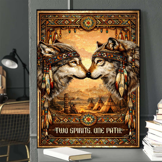 Native American Inspired Wolf Art - "Two Spirits, One Path" Couple for Poster/Canvas