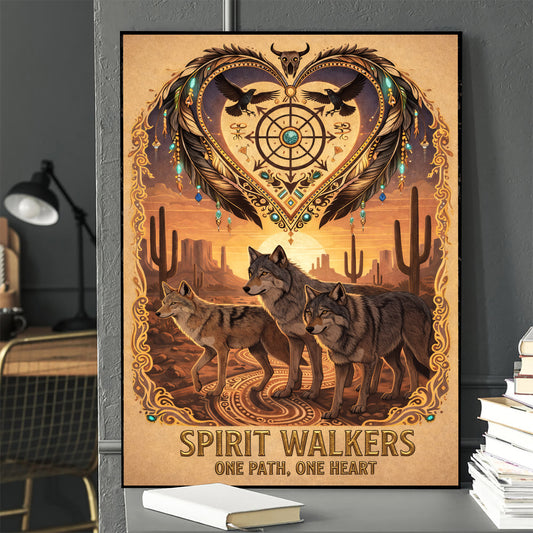 Spirit Walkers "One Path, One Heart" Wolf Family - Native Inspired Spiritual for Poster/Canvas