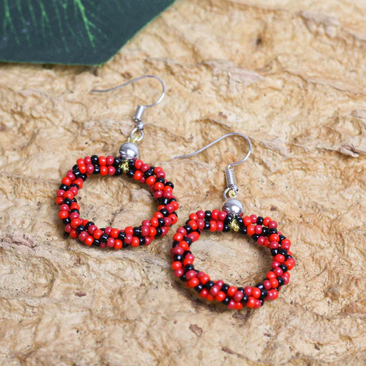 Black Round Pattern Beaded Handmade Hoop Earrings For Women