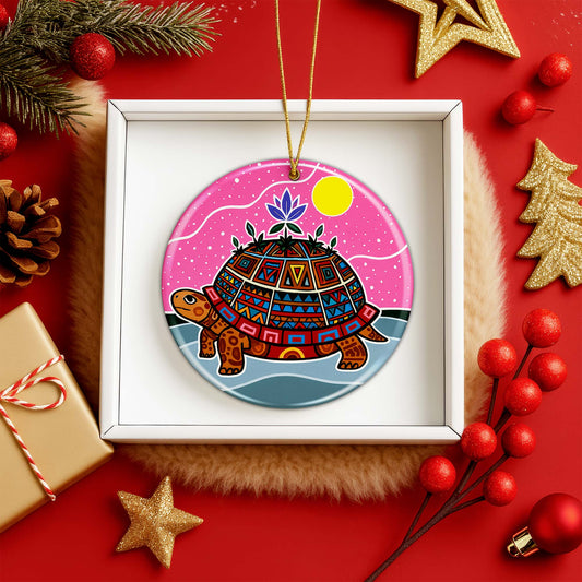 Turtle Island Ceramic Ornament - Indigenous Inspired for Holiday Decor