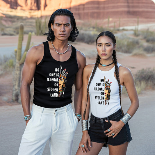 No One Is Illegal on Stolen Land Native American Unisex Tank Top