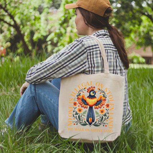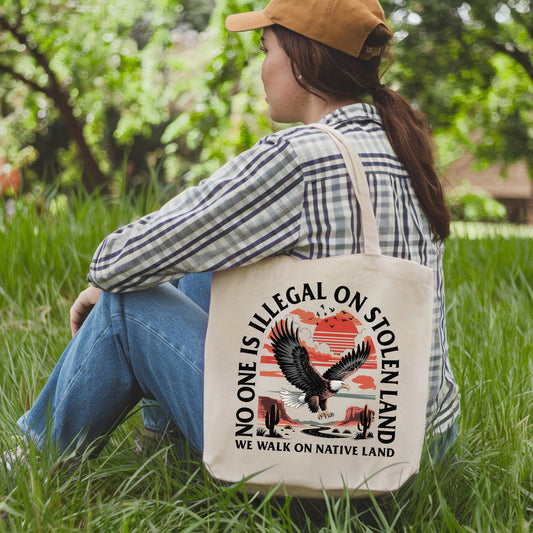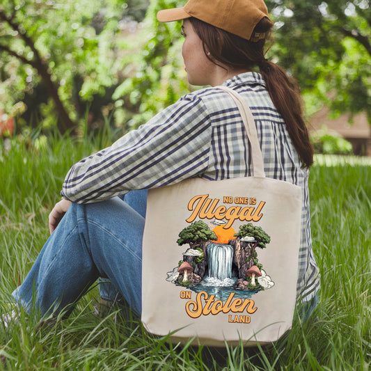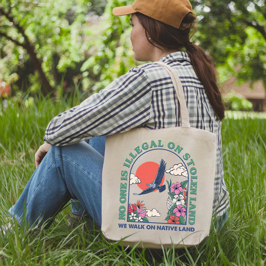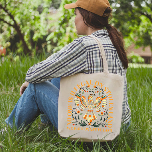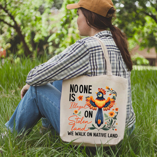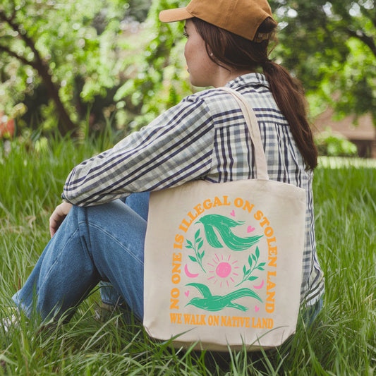 NO ONE IS ILLEGAL ON STOLEN LAND. WE WALK ON NATIVE LAND - Tote Bag