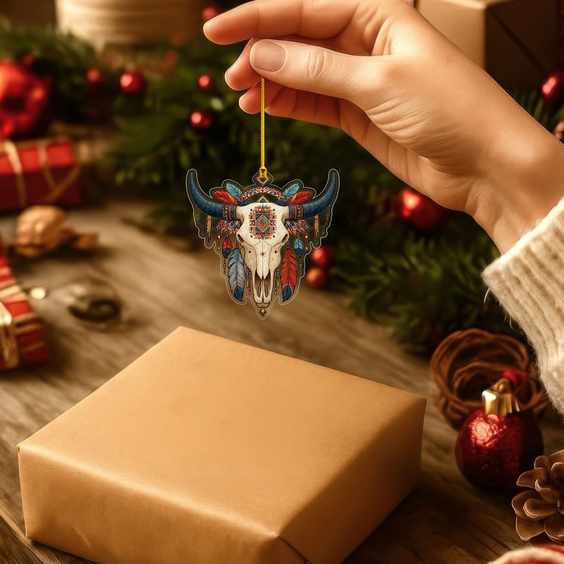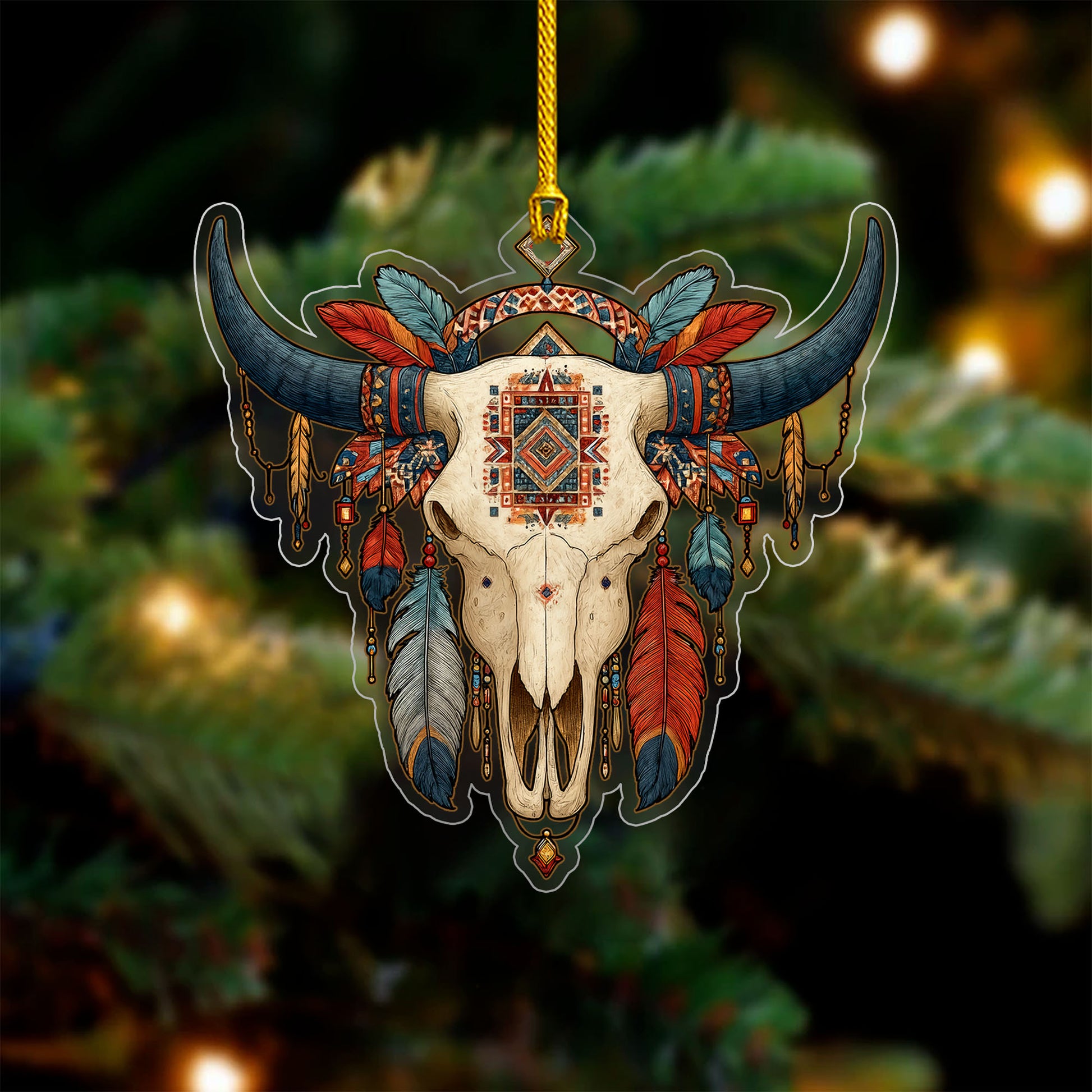 Buffalo Skull Native American - Tribal Feathers Christmas Decoration Gift Flat Acrylic