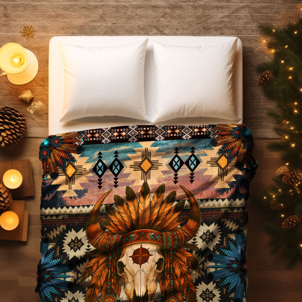 Custom Native American Buffalo Skull Tribal Fleece Blanket