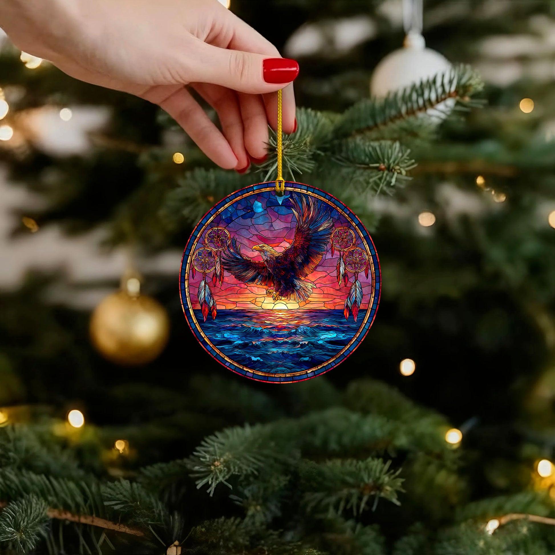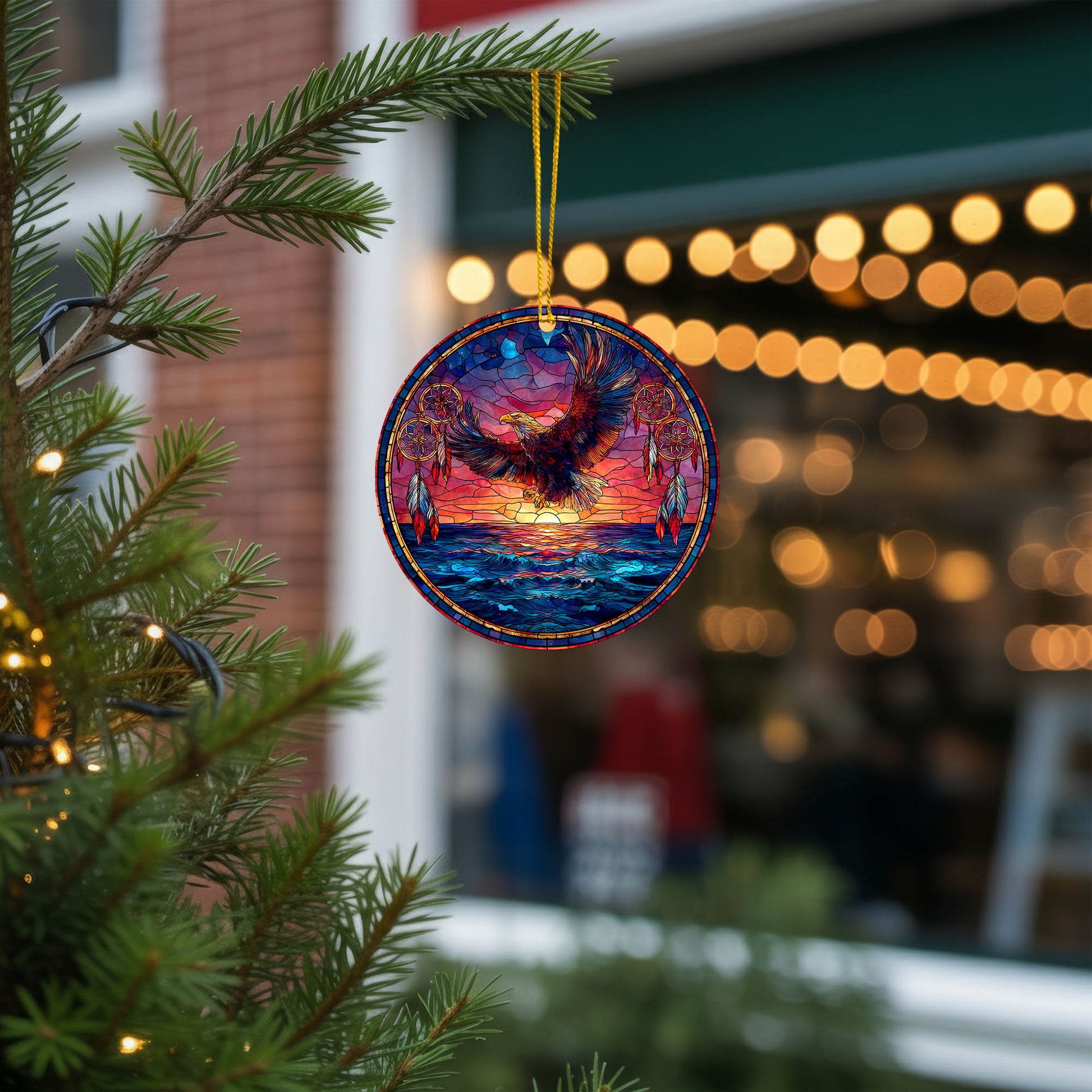 Flying Eagle Sunset Ocean Scene with Dreamcatchers Christmas Gift Decor Flat Acrylic