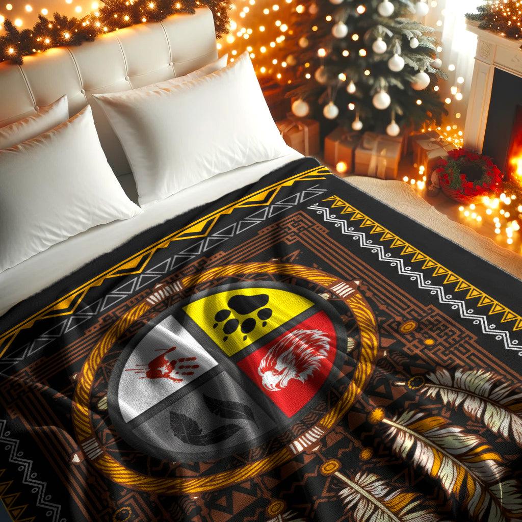 Four Directions Medicine Wheel Blanket - Native American Dreamcatcher Design