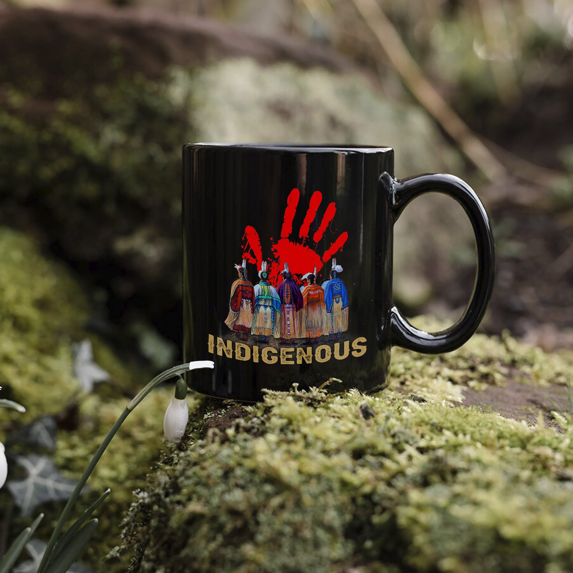 MMIW Indigenous Woman Red Hand Together Ceramic Coffee Mug