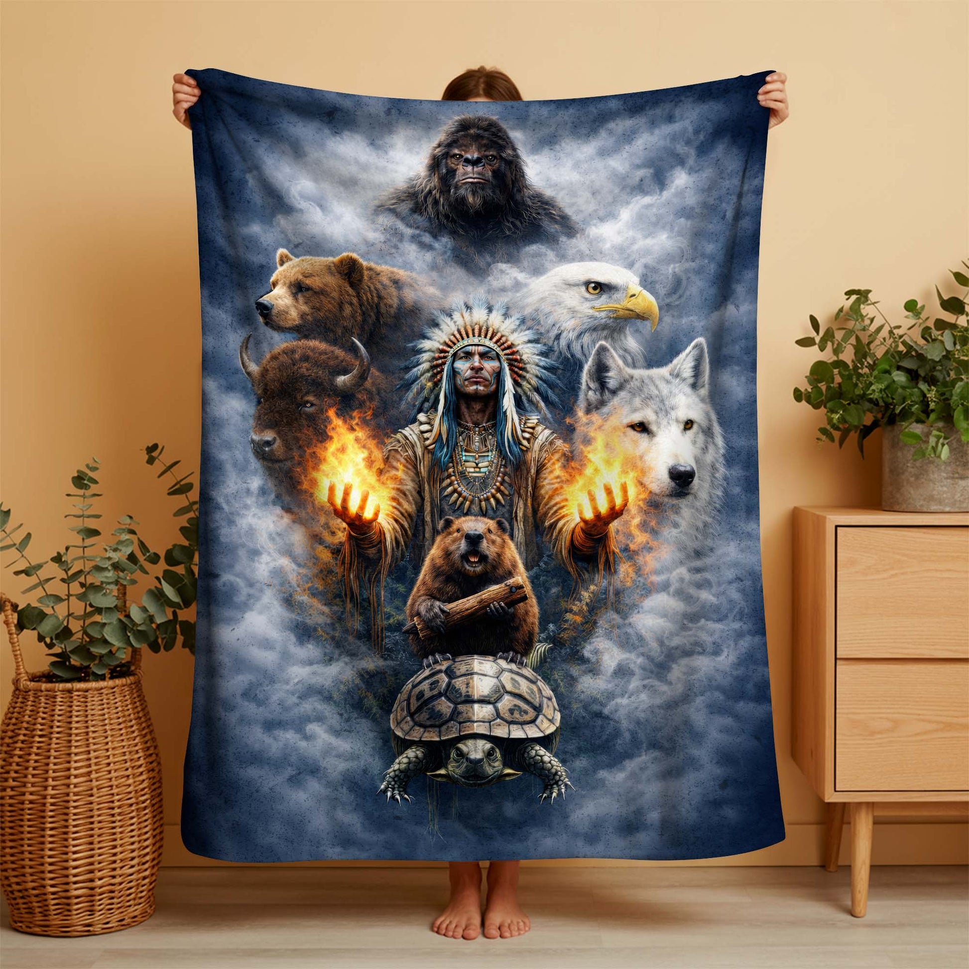 Native American Spirit Animal - Chief with The Seven Teachings Design for Blanket