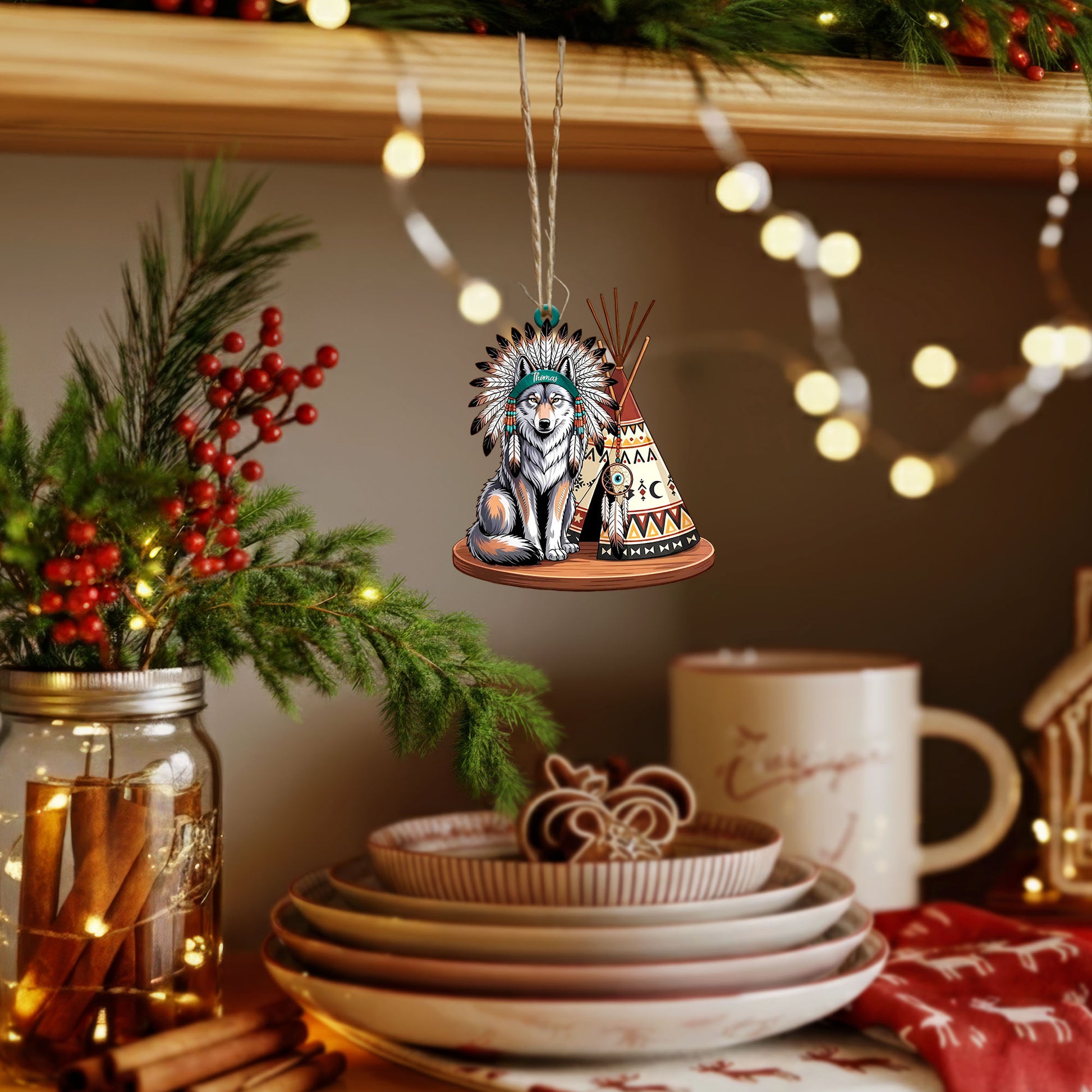 Native American Wolf Christmas - Custom Name Design - Ornament Acrylic