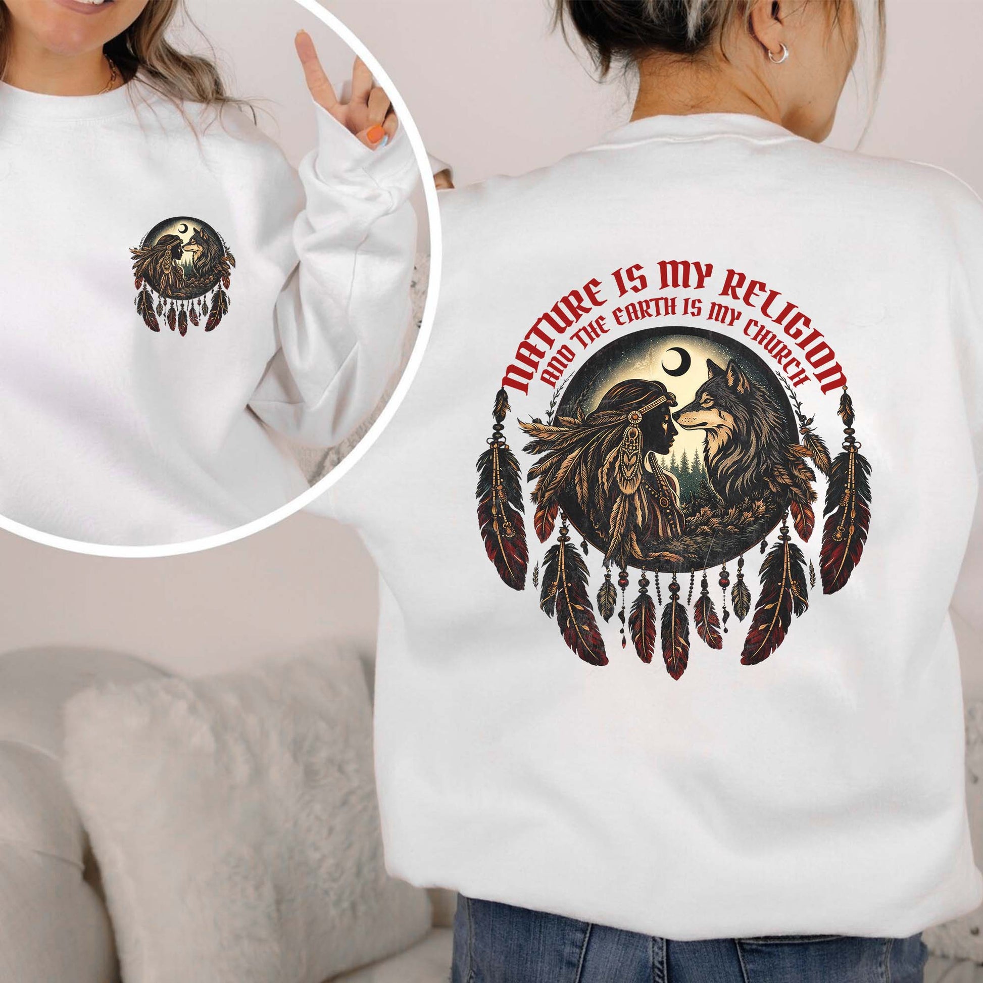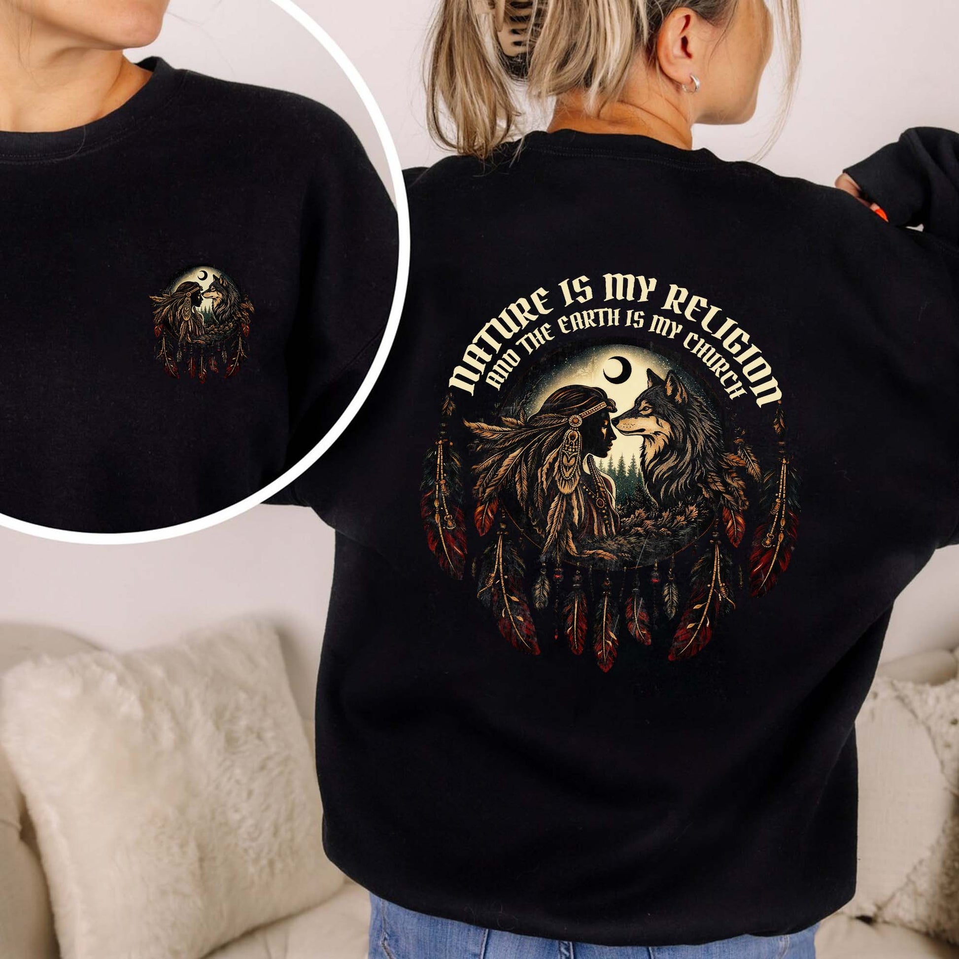 Nature Is My Religion The Earth Is My Church Wolf Spirit - Two Sides - Unisex T-Shirt/T-Shirt V-Neck/Hoodie/Sweatshirt