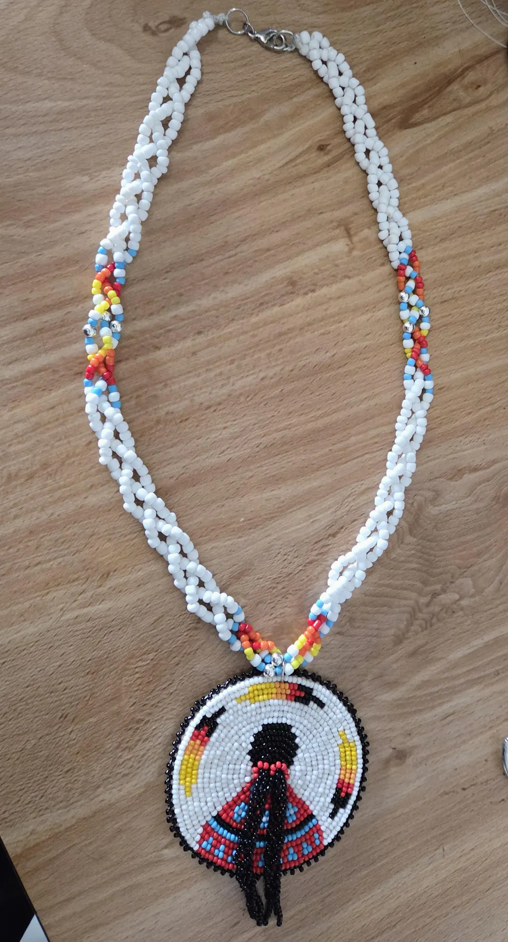 Wearing this Necklace with its Beaded Patch, is a unique way to honor your heritage while embracing your present self. It's an embodiment of cultural pride, personal reflection, and artistic appreciation that resonates with the timeless spirit of Native American art and creativity.