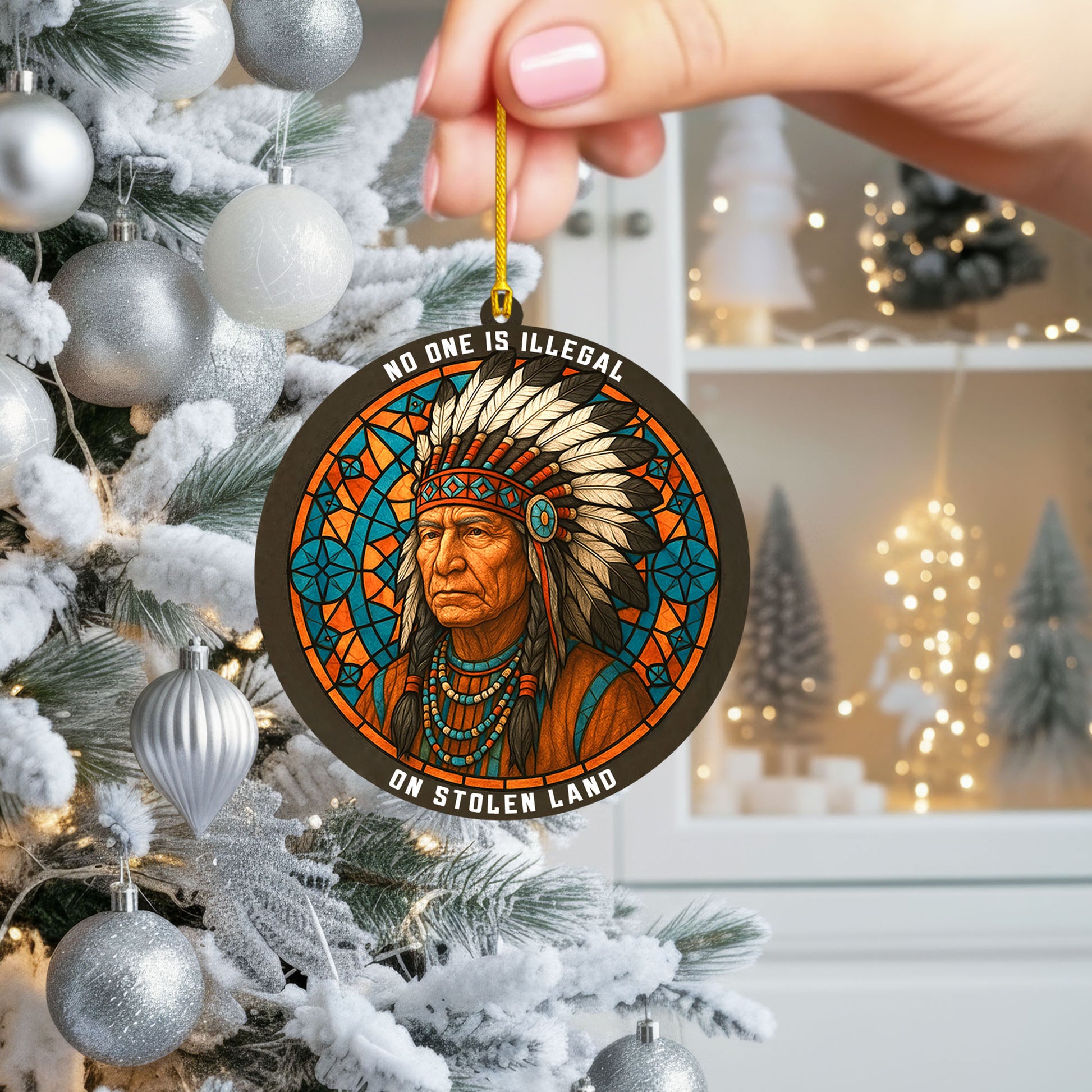 No One Is Illegal on Stolen Land - Native American Chief Christmas Decoration Flat Acrylic