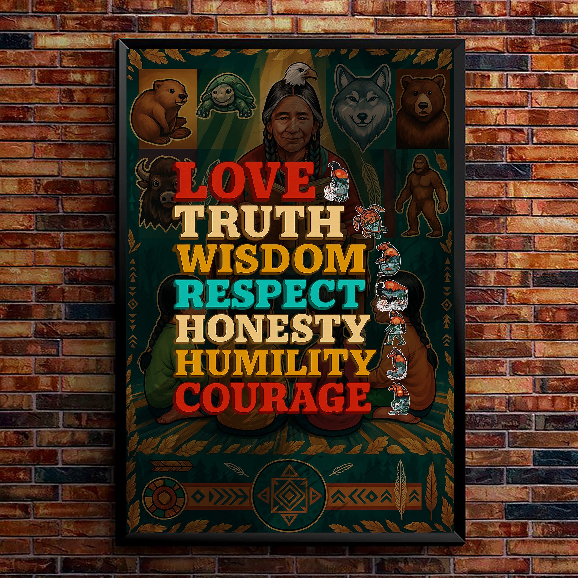Seven Grandfather Teachings - Values Typography Poster/Canvas
