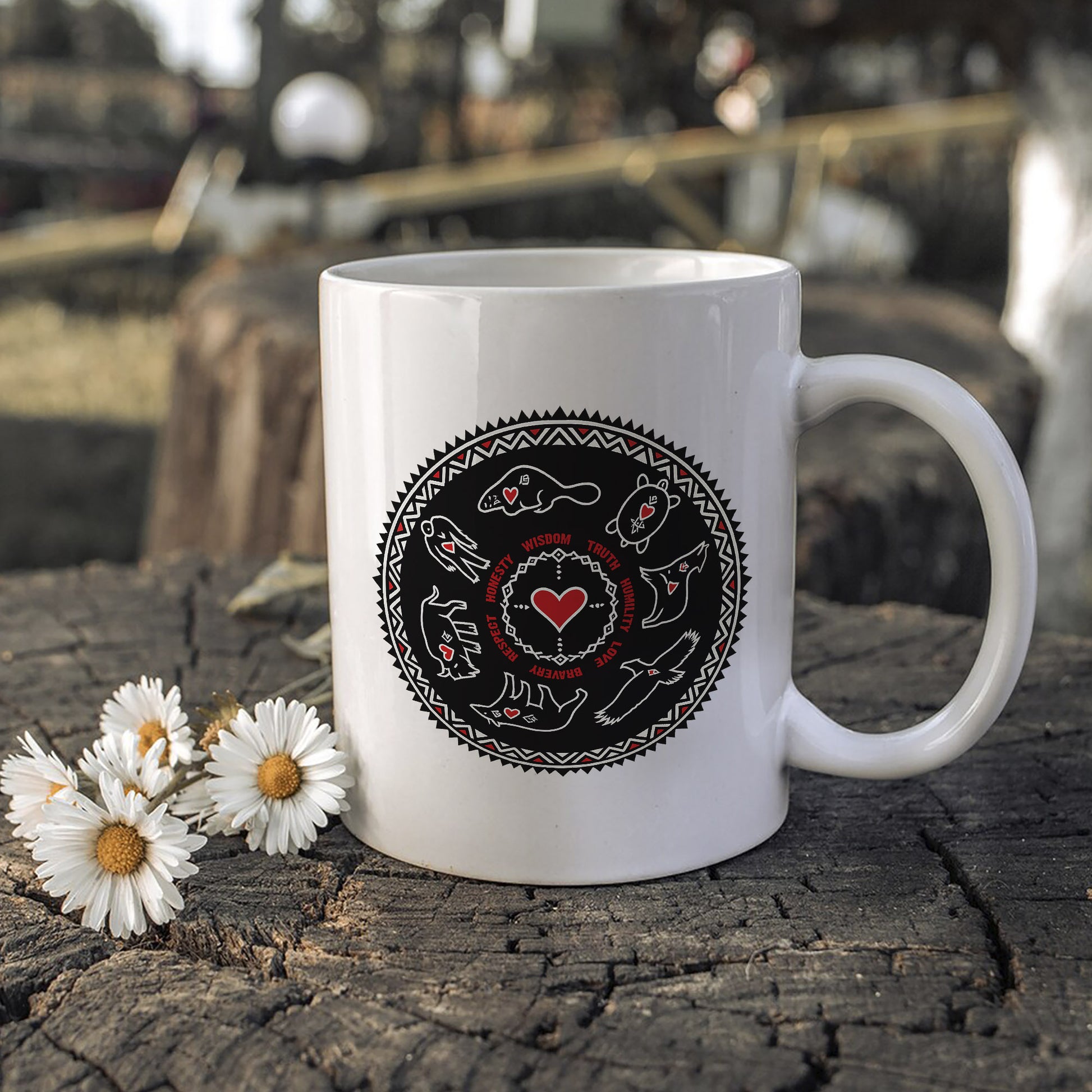 In time, the Grandfathers sent a helper to the Earth to find a worthy child, prepared by journeys across the four directions. When the child turned seven, each Grandfather bestowed upon him a spiritual gift: Wisdom, Love, Respect, Bravery, Honesty, Humility, and Truth.