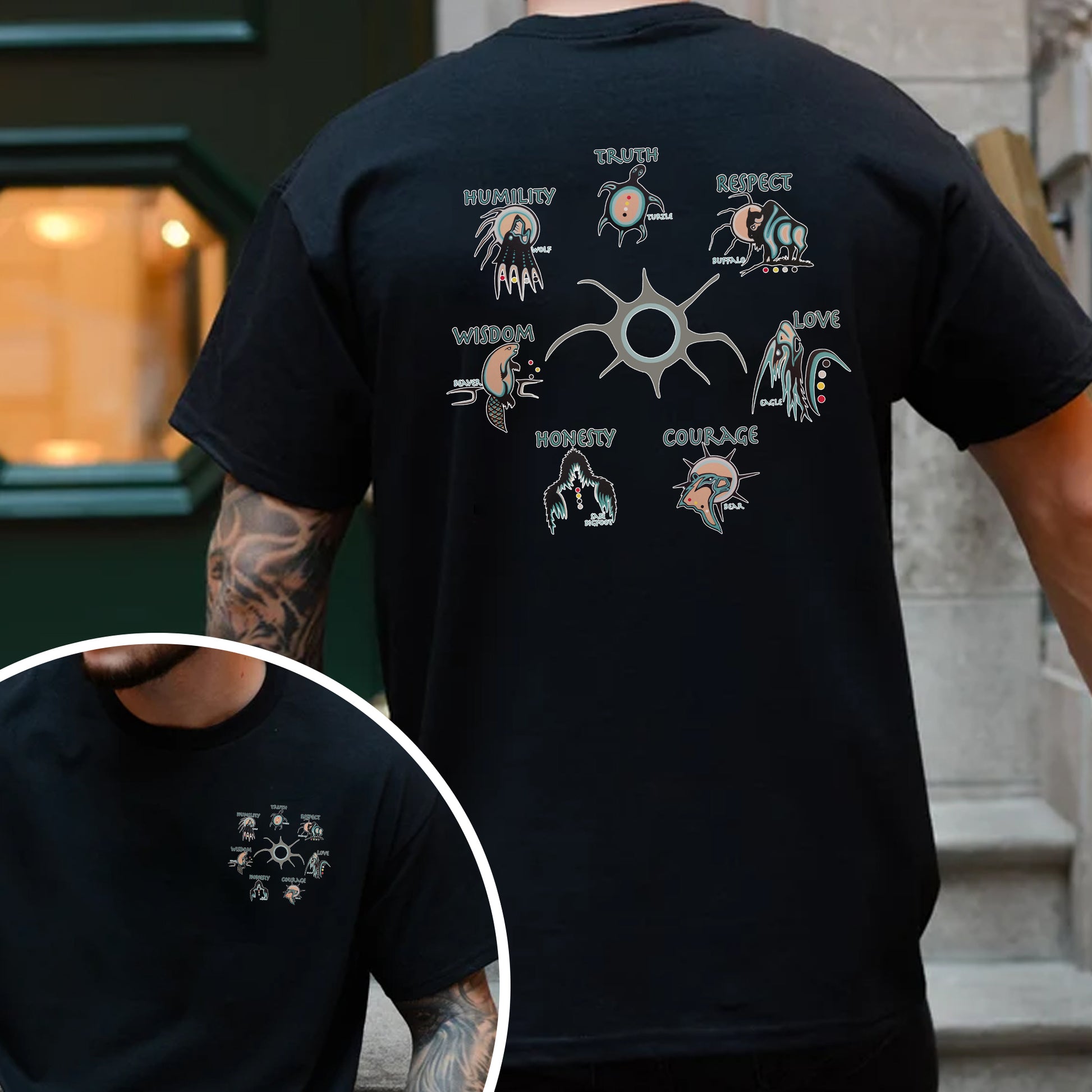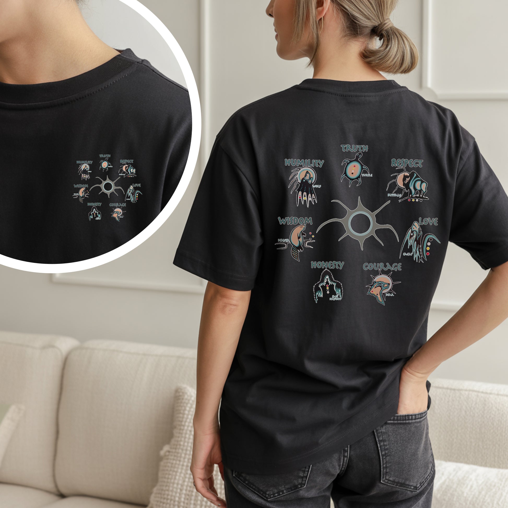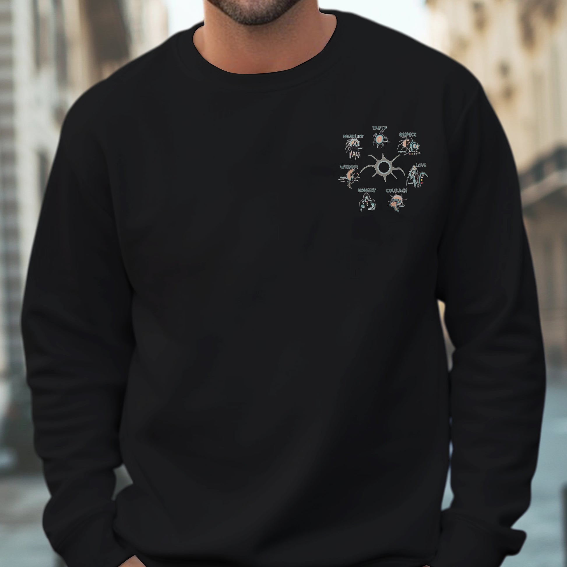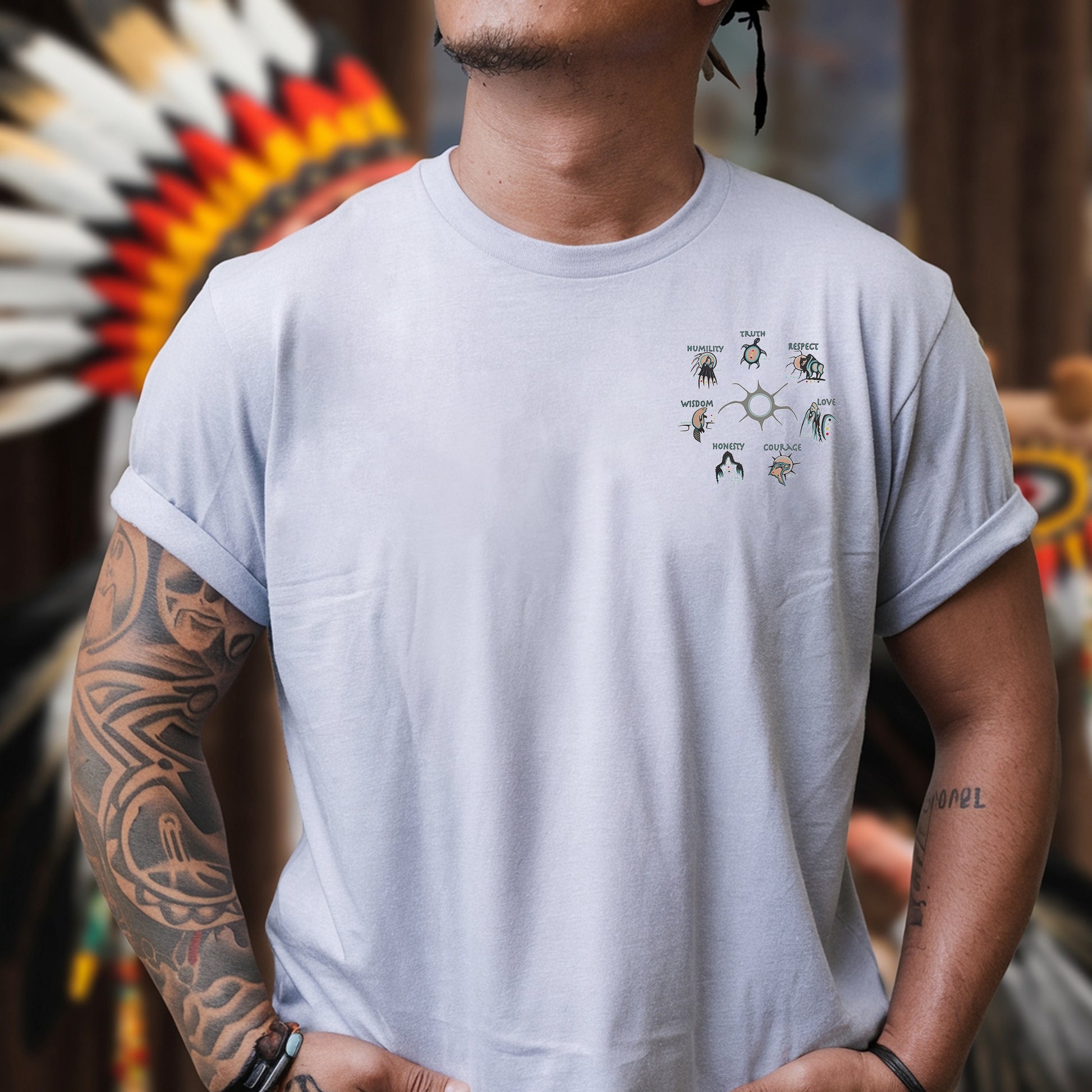 In time, the Grandfathers sent a helper to the Earth to find a worthy child, prepared by journeys across the four directions. When the child turned seven, each Grandfather bestowed upon him a spiritual gift: Wisdom, Love, Respect, Bravery, Honesty, Humility, and Truth.