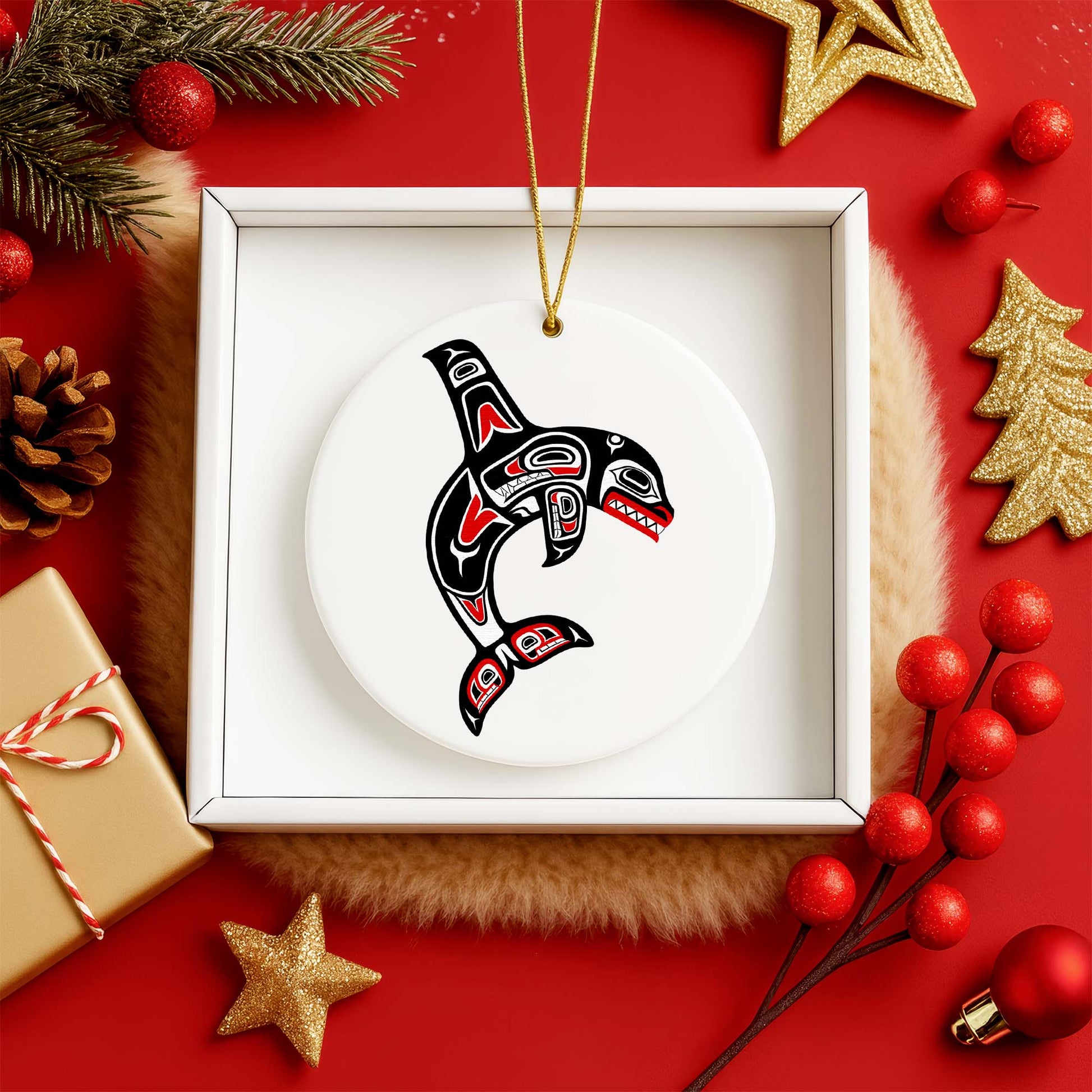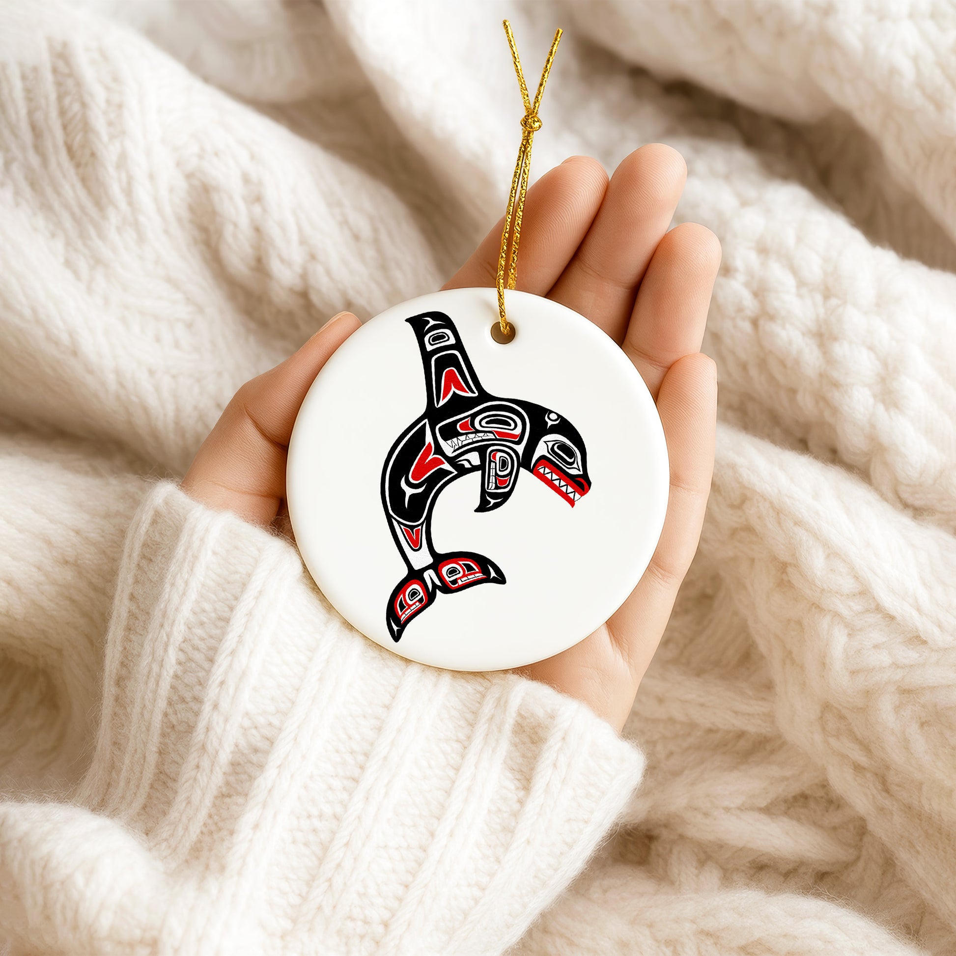 Tribal Orca Whale Ceramic Ornament - Unique Native Art for Holiday Decor