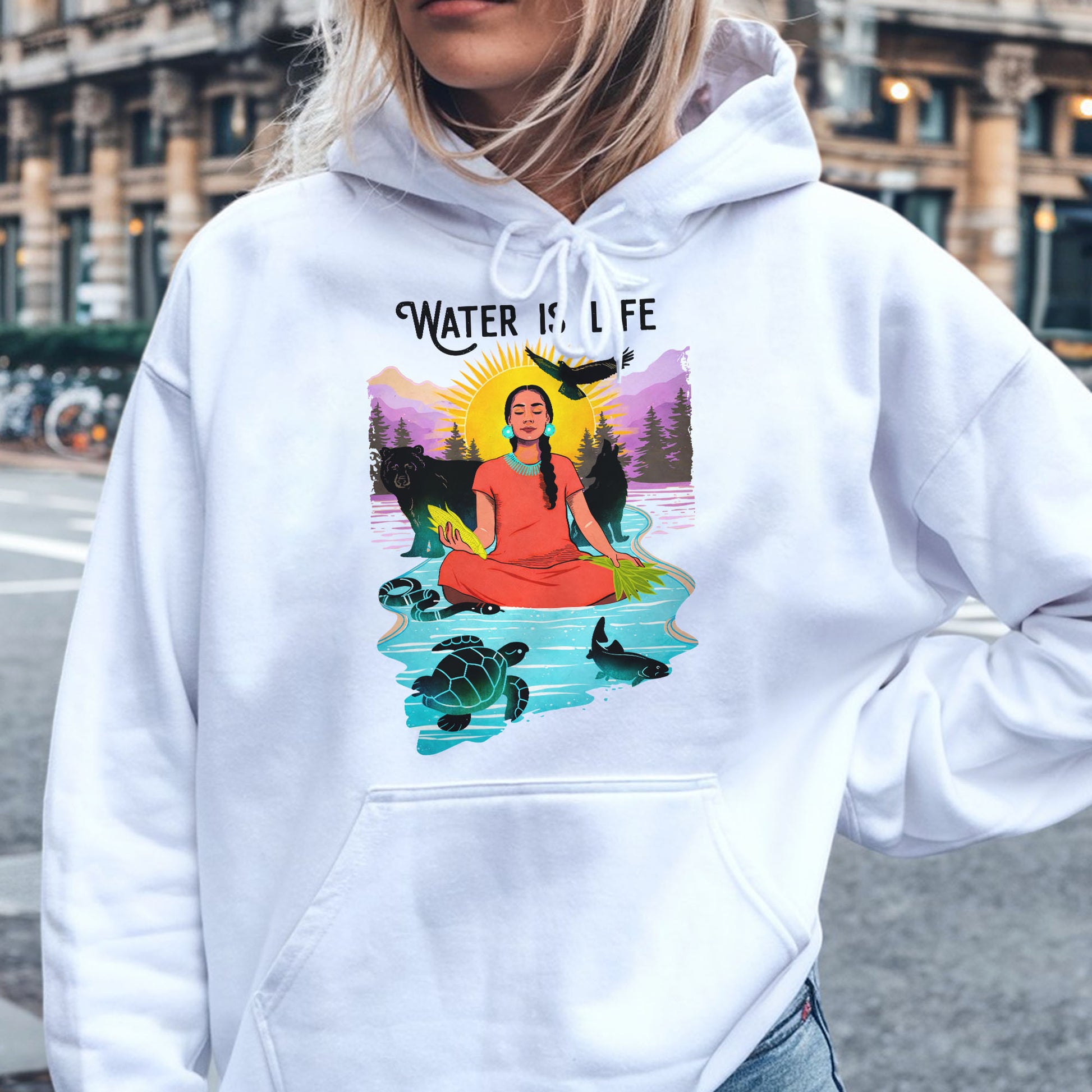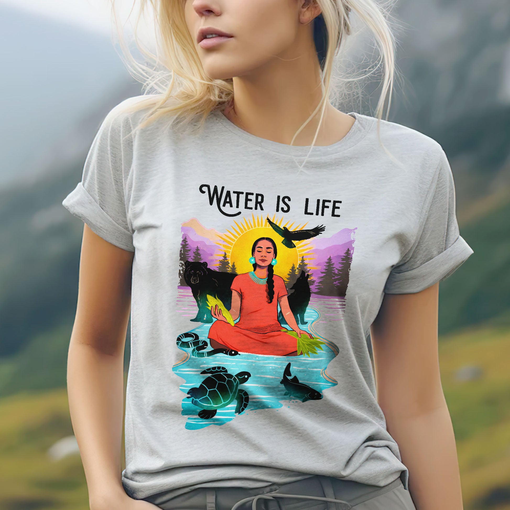 Water is Life Native American Woman - Unisex T-shirt/V-neck T-shirt/Hoodie/Sweatshirt